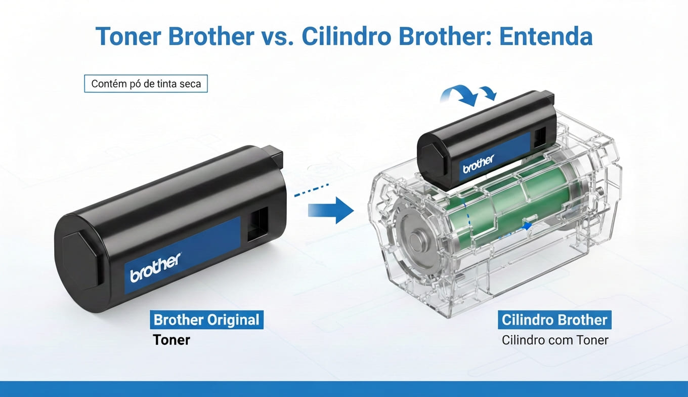 Diferente de outras marcas, a Brother utiliza um sistema de impressão em duas partes (Toner + Unidade de Cilindro). Neste artigo, você vai entender por que economizar alguns reais no cartucho pode custar muito caro na manutenção do seu equipamento.